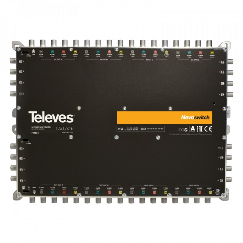 Nevoswitch T714803 on ketjutettava suorajakelukytkin, joka on varustettu 17 tulolla (yksi maanpäällinen ja neljän satelliitin 4 polaarisuutta) ja 16 lähdöllä. Laitetta voidaan käyttää päätelaitteena (tähtiverkossa) tai kaskadina.