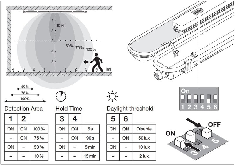 LEDVANCE DAMP PROOF SENSOR 1500 46W/4000K suljettu teollisuusvalaisin liike- ja hämärätunnistimella. Valovirta 6400 lm, avauskulma 110 ast. ja valotehokkuus 135 lm/W. IP65- ja IK08-luokiteltu. Mitat: 1500 x 82 x 68 mm. Keskimääräinen käyttöikä 70 000 h. LEDVANCE DAMP PROOF CLASSIC -toinen sukupolvi. Uusien PERFORMANCE-tason DAMP PROOF -teollisuusvalaisimien pidempi käyttöikä takaa entistäkin luotettavamman toiminnan. Uudet 8000 lm:n ja 11000 lm:n valovirran mallit laajentavat valaisimien käyttöaluetta korkeampiin tiloihin tai mahdollistavat korkeamman valaistustason esimerkiksi tuotantotiloissa. Parempi 135 lm/W:n valotehokkuus parantaa koko asennuksen energiatehokkuutta. DAMP PROOF CLASSIC -valaisimet ovat läpijohdotettavissa.