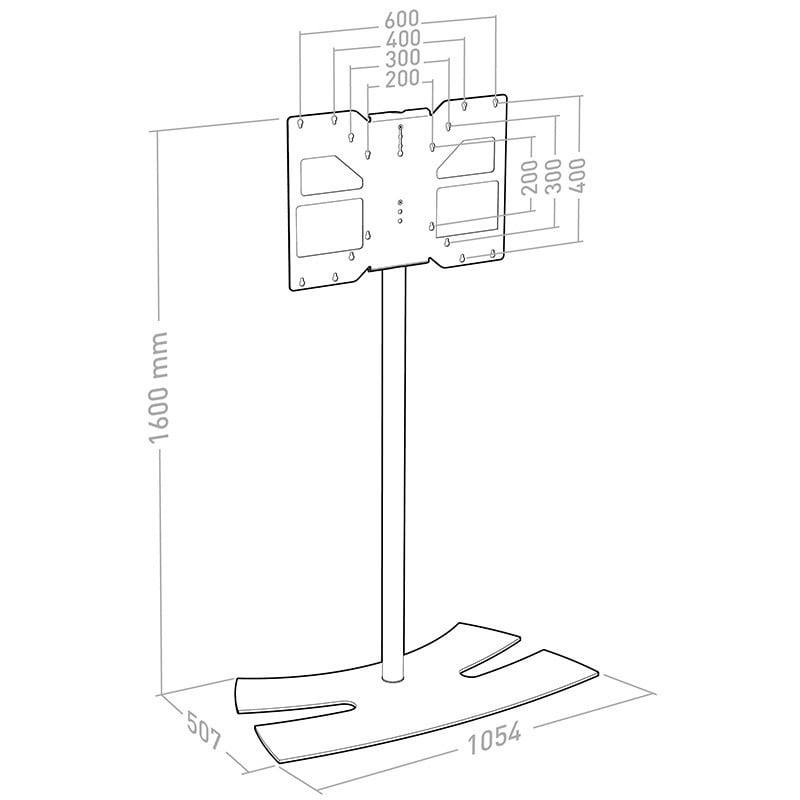 Hillitysti mutta tyylikkäästi suunniteltu lattiajalusta, johon voi kiinnittää jopa 85\":n TV-laitteen. Sen korkeuden ansiosta voit valita, haluatko asentaa TV-laitteesi vaaka- vai pystyasentoon käyttötarkoitukseen sopivaksi. Saat piilotettua kaikki liitetyt johdot helposti jalustan rungon sisään.