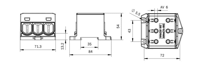 OUNEVA - OTL Haaroitusliitin - 3x25-150mm² Al/Cu Musta