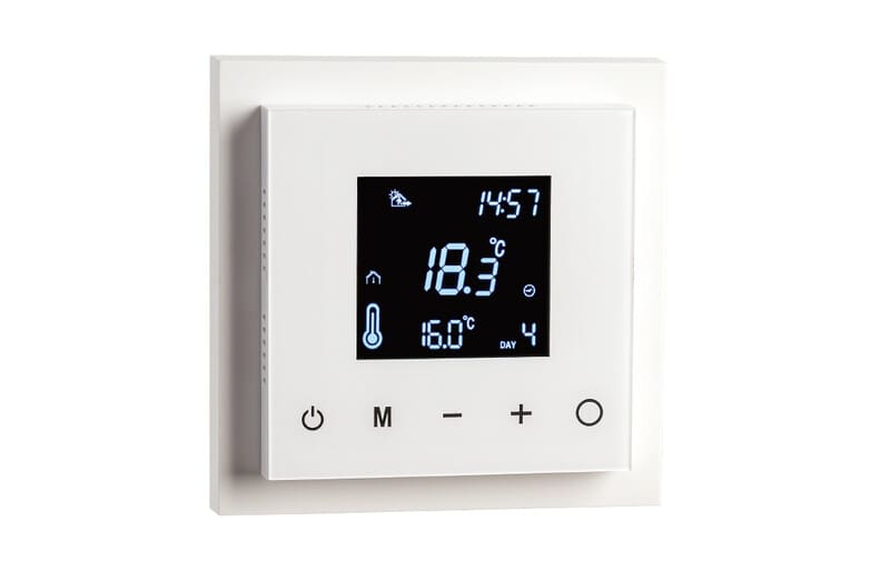 SG Install Yhdistelmätermostaatti ohjaa sähköistä lattialämmitystä monilla ominaisuuksilla kodin lämmityksen optimoimiseksi.