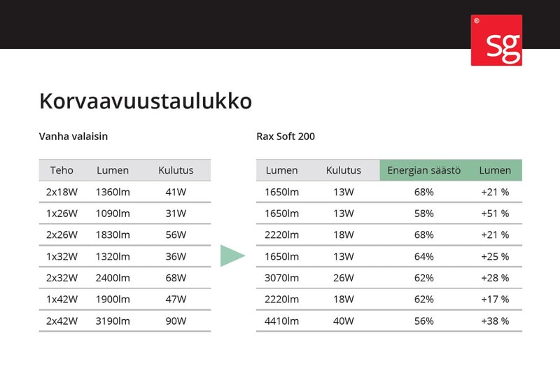 Rax Soft 200 on tehokas downlight-valaisin julkisten rakennusten, toimistojen, käytävien jne. valaistukseen, jossa optimoidun linssi- ja heijastinoptiikan yhdistelmä takaa erinomaisen valonsäädön. Saatavana mattapintaisella heijastimella, joka takaa parhaan mahdollisen tehokkuuden. Rax Soft 200 on helppo asentaa jousilla, jotka sopivat kattopaneeleihin, joiden paksuus on 1-50 mm.
