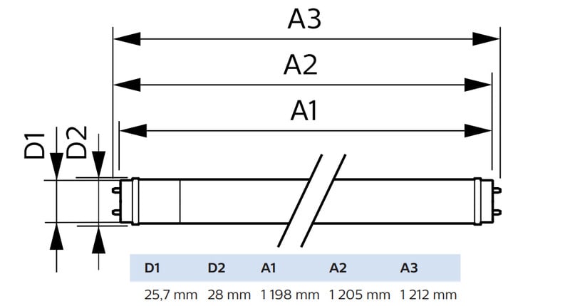 - Korvaa 36 W perinteisen T8-loisteputken