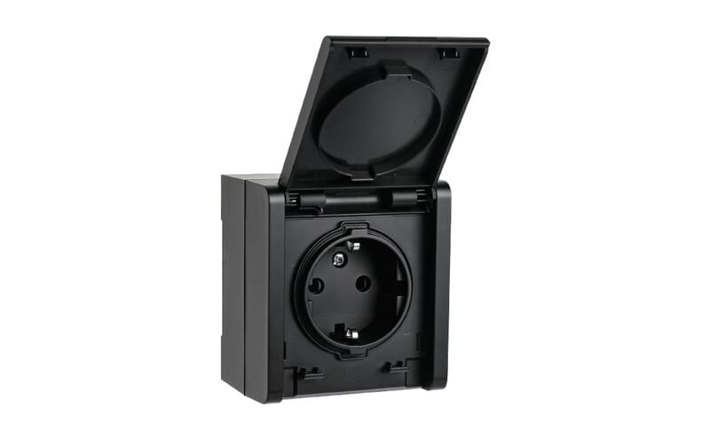 Pistorasia pinta-asennus Musta IP44 1 osainen maadoitettu