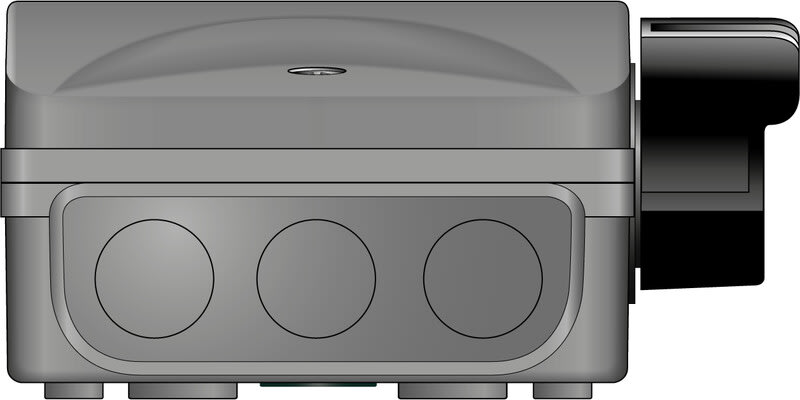 Kotelon ylä- ja alaosassa on kolme kalvoläpivientiä, erillisiä holkkitiivisteitä ei tarvita. Sisällä vedonpoistimet kaapelien kiinnittämiseksi. Väri harmaa.