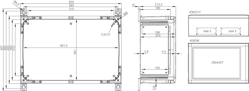 Sisältää : Kaapin alaosa, ovi PUR tiivisteellä, ruuvit asennuslevylle. 3mm kaksoislehtilukko(t) avaimella. S versiot kääntökahvalla. Oviohjain sisältyy. Ei sisällä asennuslevyä. IP66; IK10