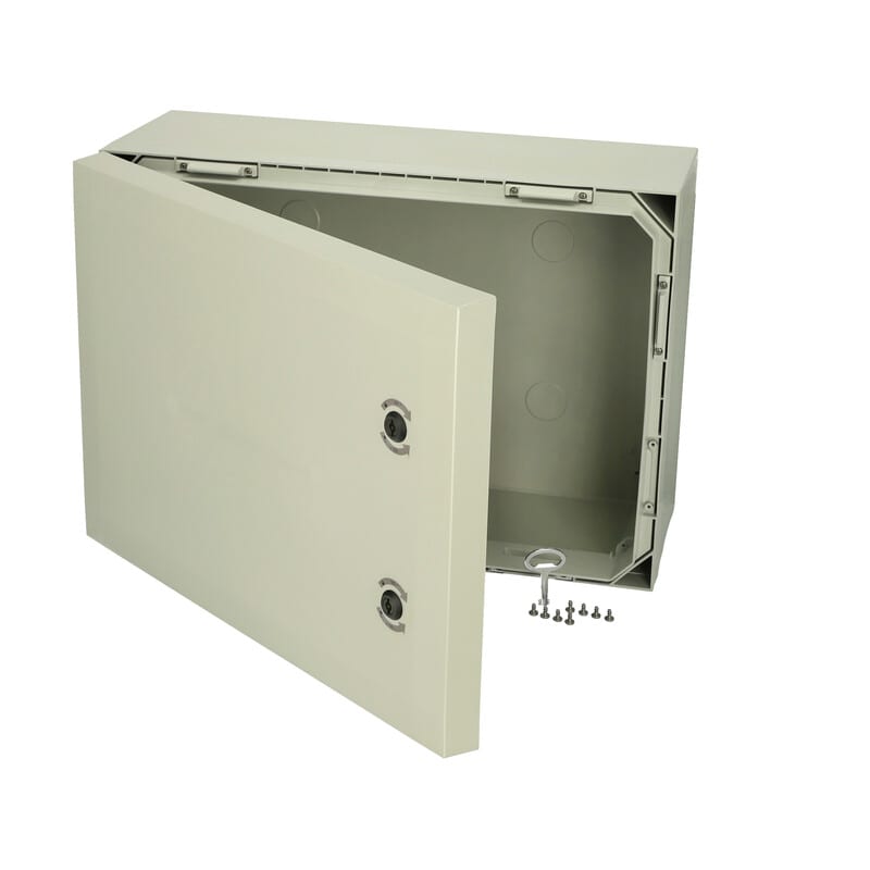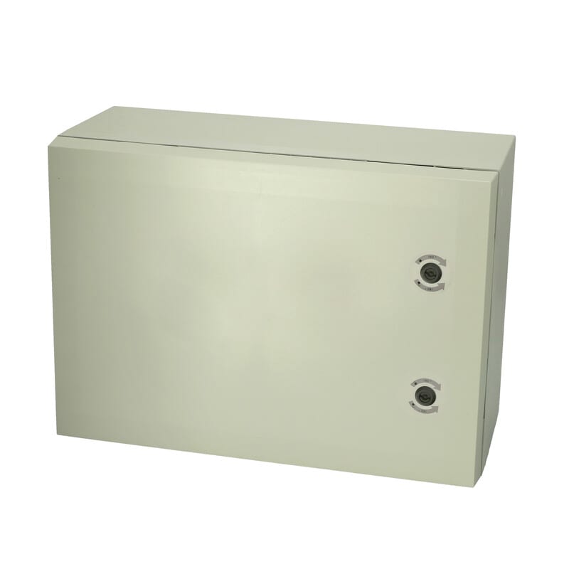 Polykarbonaatti-kaappi, 500x700x300, Harmaa ovi, 2-pistelukitus, saranat lyhyellä sivulla, Sisältää ruuvit asennuslevylle sekä avain lukitussalvoille. Ei sisällä asennuslevyä.