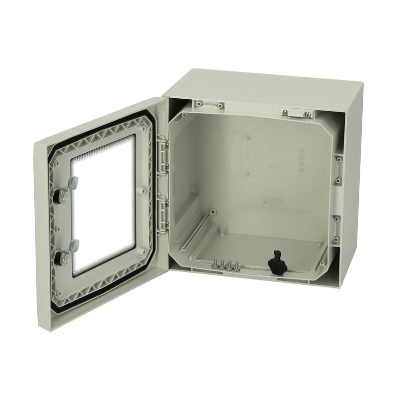Polykarbonaatti-kaappi, 300x300x210, Harmaa ovi ikkunalla, 2-pistelukitus avaimella, Ruuvit asennuslevylle, Ei sisällä asennuslevyä, IP65, IK08 FIBOX ARCA polykarbonaattikaapit UUTUUS!