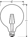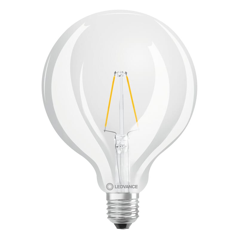 LEDVANCE Performance Classic Globe 2,5W 2700K E27 ei-himmennettävä kirkas LED-sisustuslamppu (G125). Valovirta 250 lm (vastaa 25 W), avauskulma 300D ja värintoistoindeksi yli 80. Pituus 178 mm, halkaisija 125 mm. Keskimääräinen käyttöikä 15 000 h. LEDVANCE LED CLASSIC PERFORMANCE -tuoteperheestä löytyy erittäin kattava valikoima kierrekantaisia LED-filamenttilamppuja. Lamput ovat valmistettu lasista ja niiden fyysiset mitat vastaavat perinteisiä lamppuja.