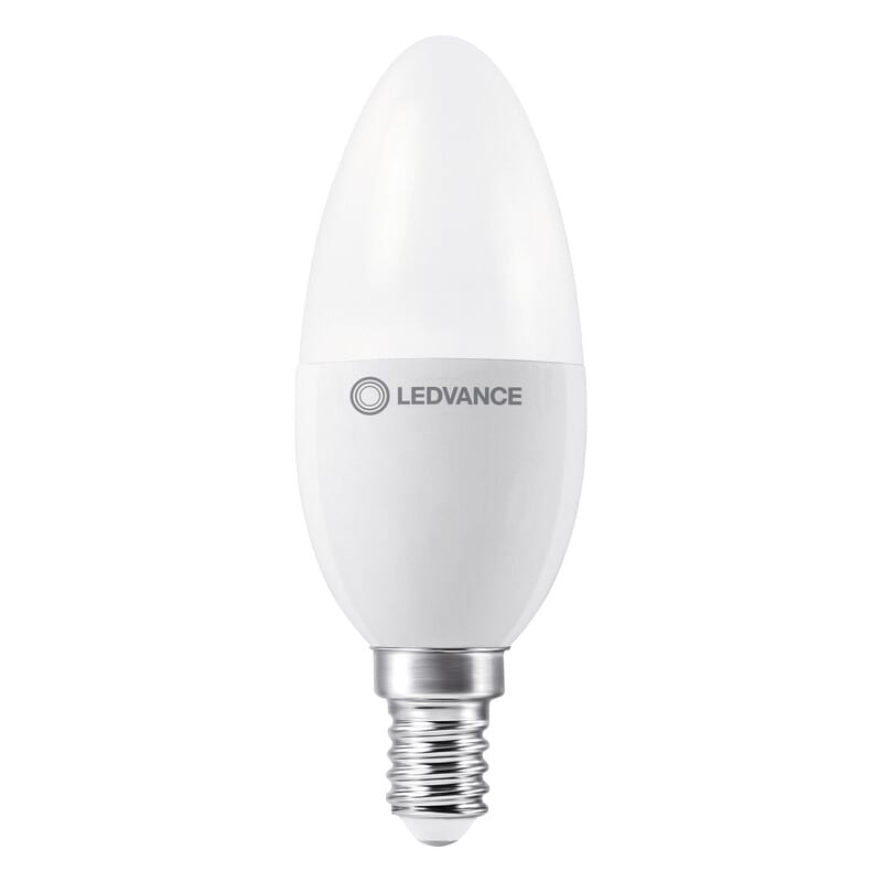 LEDVANCE Performance Facility Classic B 7,3W 2700K E14 ei-himmennettävä opaali LED-kynttilälamppu (C35). Valovirta 806 lm (vastaa 60 W), avauskulma 200D ja värintoistoindeksi yli 80. Pituus 107 mm, halkaisija 37 mm. Keskimääräinen käyttöikä 25 000 h. LEDVANCE LED CLASSIC FACILITY -tuoteperheen LED-lamput soveltuvat käytettäväksi myös 230 V:n DC-jännitteelle ja niiden kytkentäkertojen kesto on normaalia lamppua parempi ja siksi ne soveltuvat erinomaisesti esimerkiksi porraskäytävien valaistukseen.