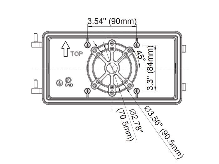 Asennus: Seinään asennus neljällä M4 tai M5-ruuvilla. Toimitetaan yhdellä läpivientiholkilla.