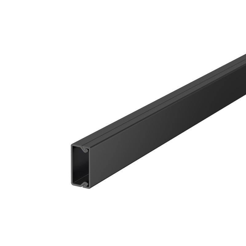 Asennuskanava kannella ja pohjarei'ityksellä, syvänmusta RAL 9005. Heijastamattoman pinnan johdosta soveltuu myös näyttämö ja esitystiloihin. Kiinnitysteipillä