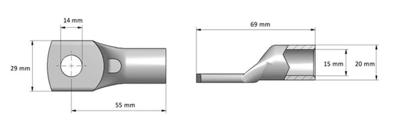 PK Cu-putkikaapelikenkä 95mm2 M14 PK-putkikaapelikengät