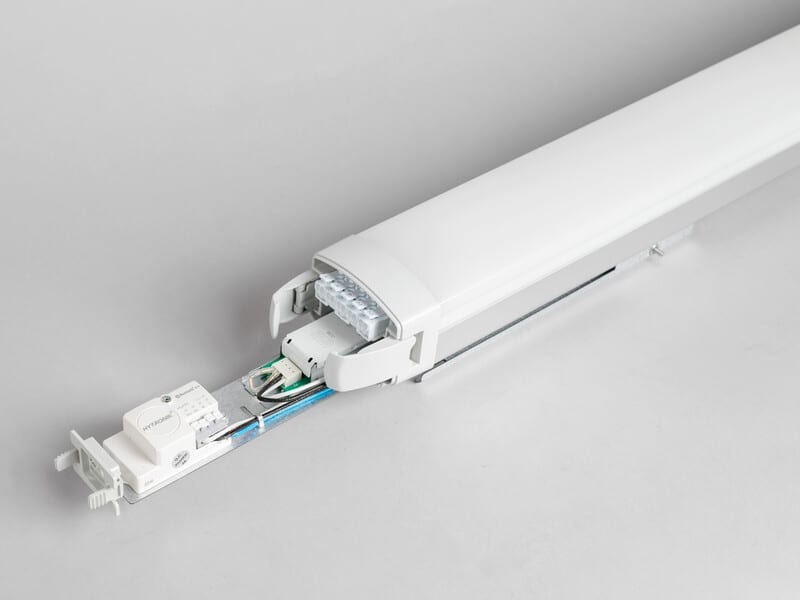 Erittäin tehokas loisteputken korvaaja, ohjaus Bluetoothilla tai DALI:lla. Liukuvat yleiskiinnikkeet ja erillinen kytkentätila päädyissä. Pikaliittimet 5x2,5mm2 läpijohdotusta varten vakiona, holkkitiivisteet M20 ja läpiviennit kummassakin päädyssä. Mukautettu asennettavaksi valaisinkiskoon, avaimenreikä kattoasennusta varten ja integroitu vaijeriripustus koukulla ja koukkulukolla. D-merkitty, IP65- ja IK09-luokiteltu asennettaviksi vaativiin ympäristöihin ja tiloihin, joissa on korkeampi palovaara. Liteline IP65 sopii täydellisesti pysäköintitaloihin, työpajoihin sekä pölyisiin ja likaisiin tiloihin.