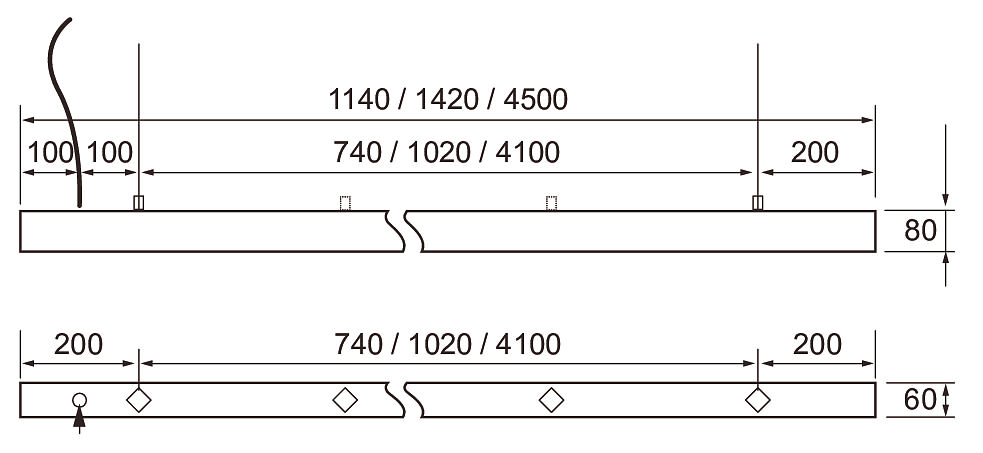 - 1420 mm / 30 W: WH/WH / 4700 lm. WH/BK 4200 lm.