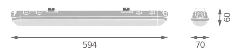 - Mitat (Pituus/leveys/korkeus): 594 x 70 x 60 mm