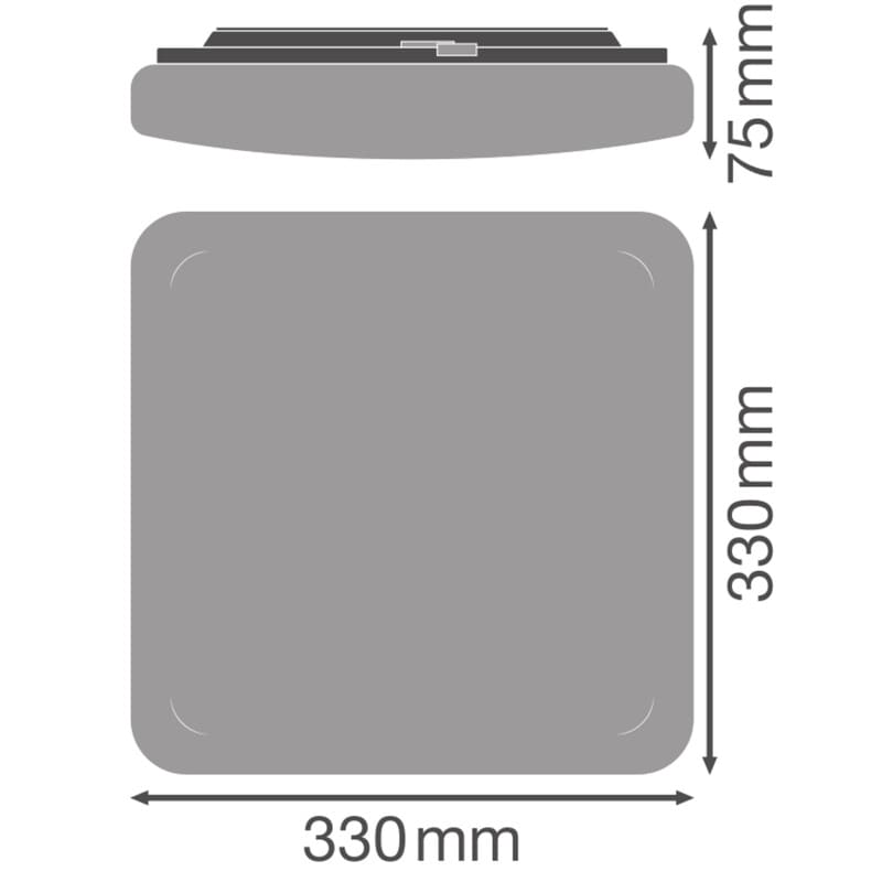 - Mitat (Pituus/leveys/korkeus): 330 x 330 x 75 mm