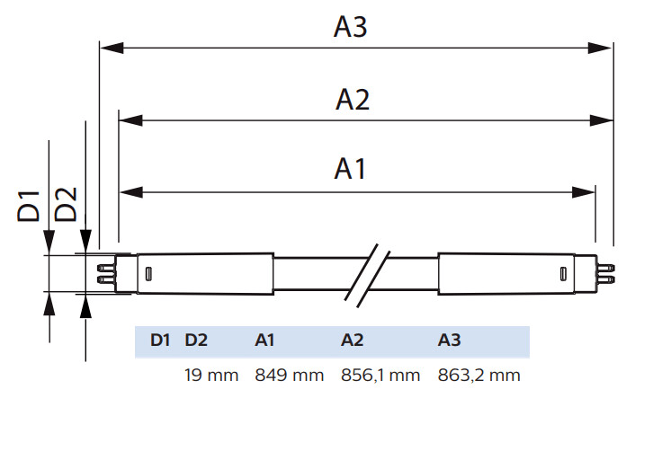 Pituus - 863 mm