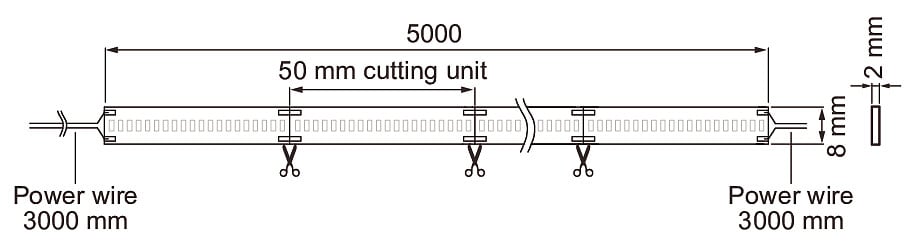 - Led-nauha 24V, katkaisu 50 mm välein.