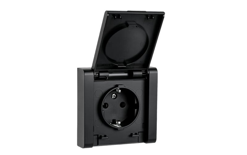 Pistorasia uppoasennus Musta IP44 1 osainen maadoitettu