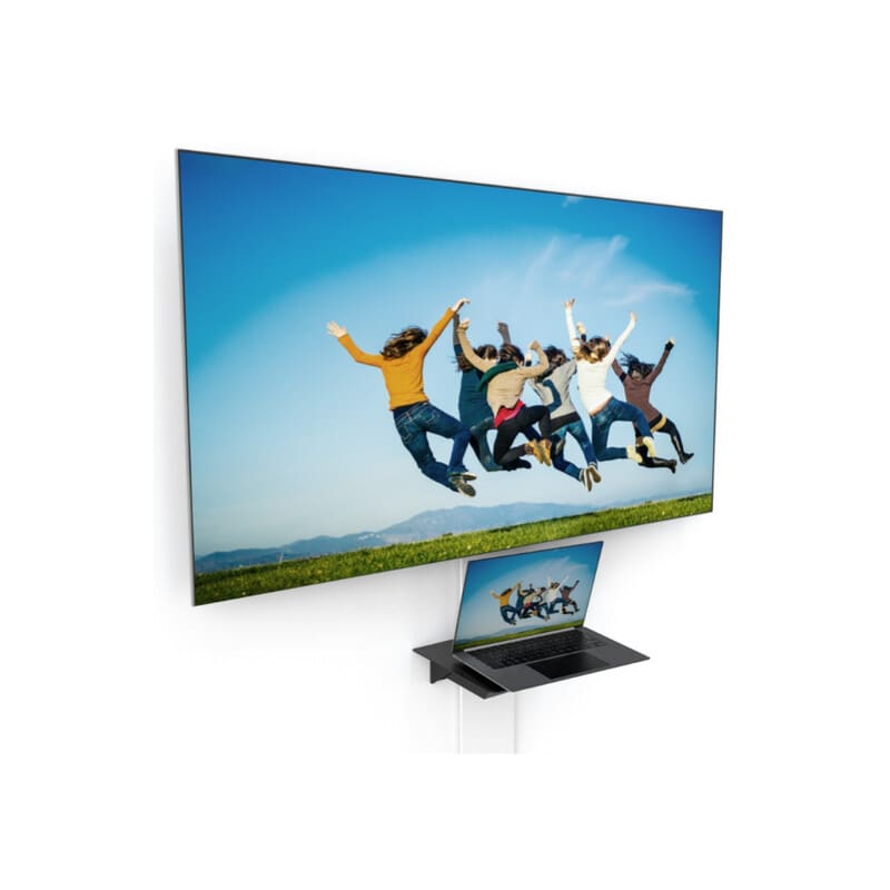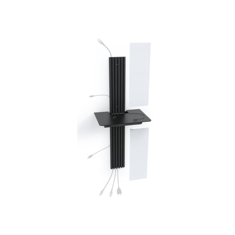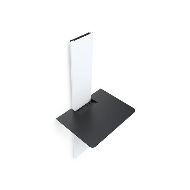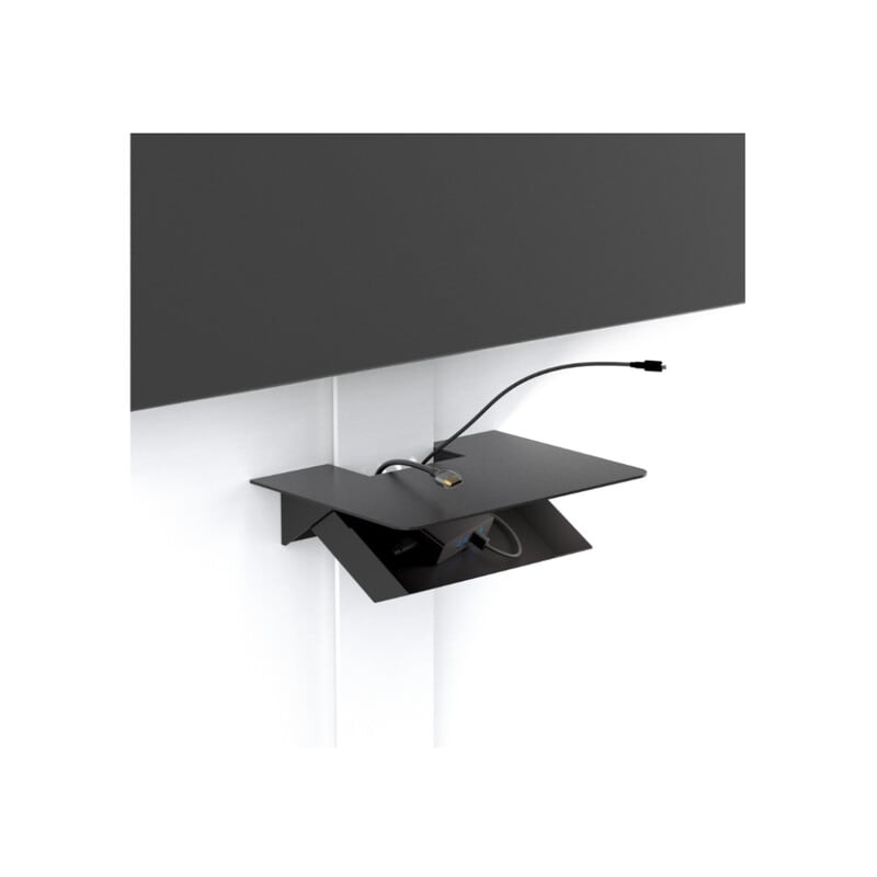 Hyllyllä voi säilyttää esimerkiksi 14" läppäriä tai tablettia. Maksimipaino laitteille on 5kg. Hylly on musta ja materiaaliltaan epoksimaalattua terästä.