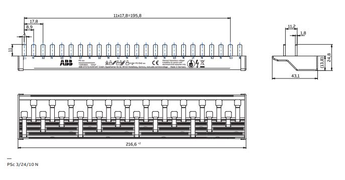 ABB - DS301C Virtakisko - 4-napainen 12 moduulia