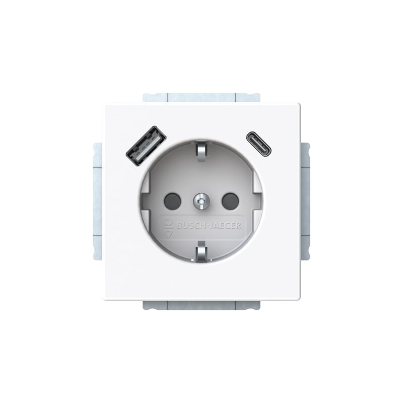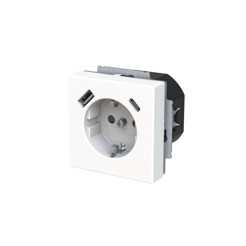 Pistorasia, Impressivo, 1-osainen, maadoitettu, 2 x USB A +C laturilla,valkoinen Impressivo 1-osainen pistorasia USB A+C liittimillä. Mobiililaitteiden lataukseen USB-kaapelin kautta. Samanaikainen lataus USB-liittimistä ja SCHUKO®-pistorasian normaali käyttö. 1x USB A-liitin ja 1x USB C-liitin. Nimellisjännite: 250 V~