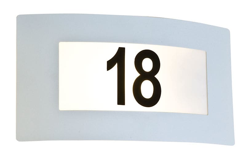 Pinta-asennettava Haaga-seinävalaisin toimii sekä yleisvalona että kiinteistön numerovalaisimena. Valaisin sulautuu linjakkaan muotoilunsa ansiosta erinomaisesti talon seinään. Kiinnitä talonnumero valaisimeen mukana tulevilla numerotarroilla (3 x 0–9). Kiinteistön omistajan tehtävänä on huolehtia, että talon osoitenumero näkyy pimeälläkin kadulle. Suosittelemme valonlähteeksi E27-kantaista led-lamppua.