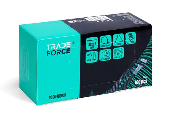 TRADEFORCE - Johdinside 100 kpl - 8.6X360 kaksoisluk. UV PA12