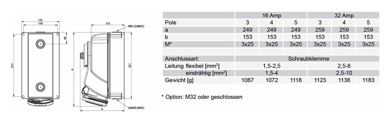 Jännite EN 60309-2 mukaan - 400 V (50+60 Hz) punainen