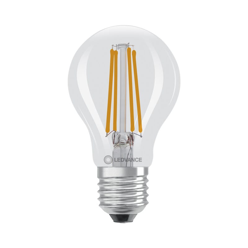 LEDVANCE Energy Efficiency Classic A 2,2W 2700K E27 ei-himmennettävä kirkas LED-vakiolamppu. Valovirta 470 lm (vastaa 40 W), avauskulma 300D ja värintoistoindeksi yli 80. Pituus 105 mm, halkaisija 60 mm. Keskimääräinen käyttöikä 50 000 h. ENERGY EFFICIENCY CLASSIC LED -tuoteperheestä löydät erittäin pitkäikäiset ja energiatehokkaat kierrekantaiset LED-lamput. Lamput ovat valmistettu lasista ja niiden mitat vastaavat perinteisiä hehkulamppuja.