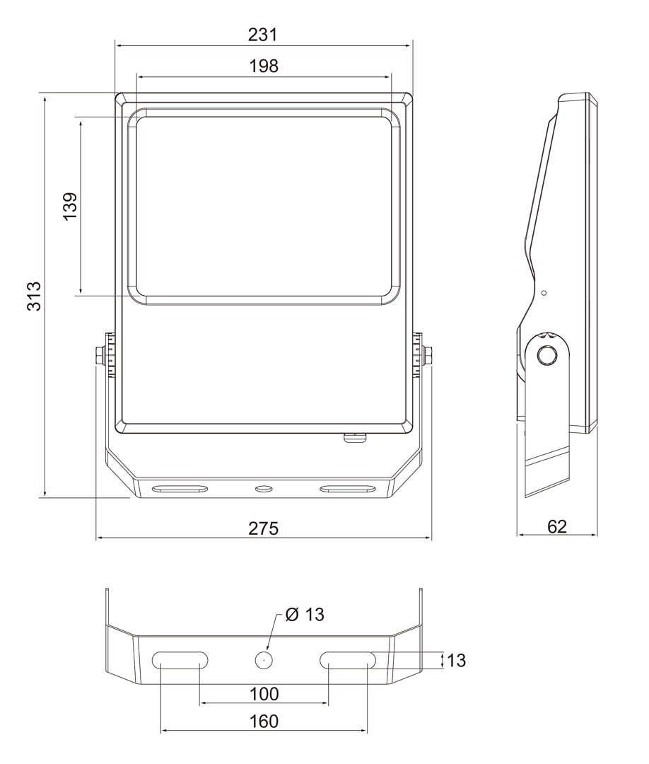 100W 4000K 12000lm Avauskulma Leveä säde 40-80°; Ei him; IP66; IK08; SL I; L70B50 100000h; LED, kiinteä; Sisältää lampun; CRI>70; SDCM5; Päättyvä; 3x1mm²; Kotelo al; Väri har; Suojus Läpinäkyvä lasi