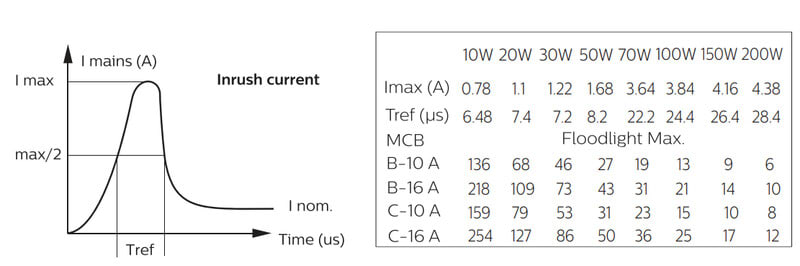 Enimmäismäärä valaisimia, johdonsuojakatkaisija C16: