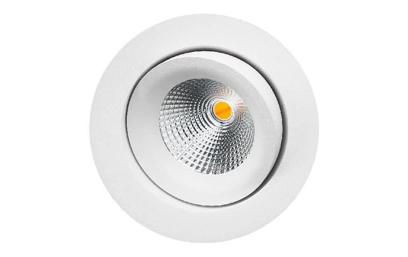 Pyöreä alasvalo sisäkäyttöön. Valon kallistus 30°, suunnattavissa portaattomasti 360°. Uppoasennus. Integroitu LED-valonlähde DimToWarm-toiminnolla 2000K-2800K, vaihehimmennyksellä tai DALI-ohjaimella (valinnainen). Painevalettua jauhemaalattua alumiinia tai harjattua terästä, suojalasilla. 36 asteen valokeilalla. Matala korkeus 54mm, upotusaukko Ø83mm. Asennus ilman työkaluja kytkentäkoteloon suoraan 230V ketjutettavalla pikariviliittimellä. IP44, Suojausluokka III. IsoSafe valaisin voidaan asentaa suoraan eristettä vasten.