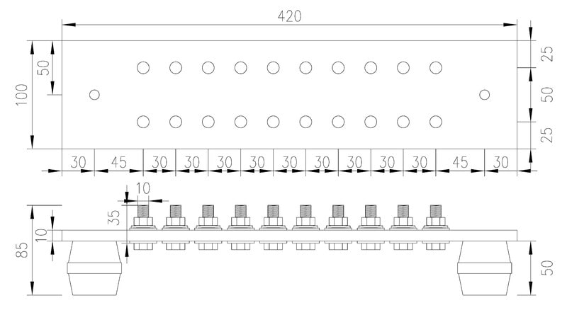 UTU - Potentiaalitasauskisko - MEB100-20 10x100x420 20 reikää