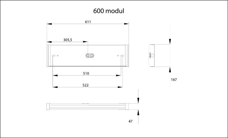 600 mm: 15 W / 1800 lm, 18 W / 2370 lm, 22 W / 2770 lm, 25 W / 3200 lm