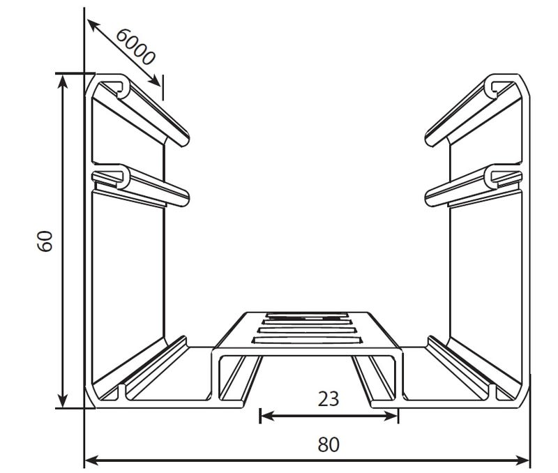 Korkea (60mm) RAL9010 pulverimaalattu valaisinkisko ulko-, parkkihalli-,teollisuus-, maataloustiloihin jopa 5 metrin kannatusväleille. Systemal Presto valaisinkiskot