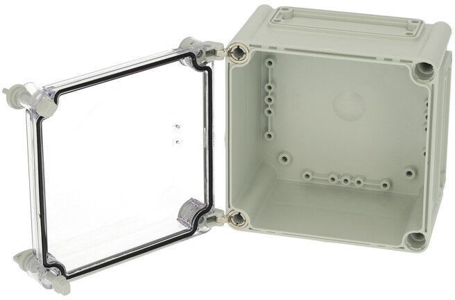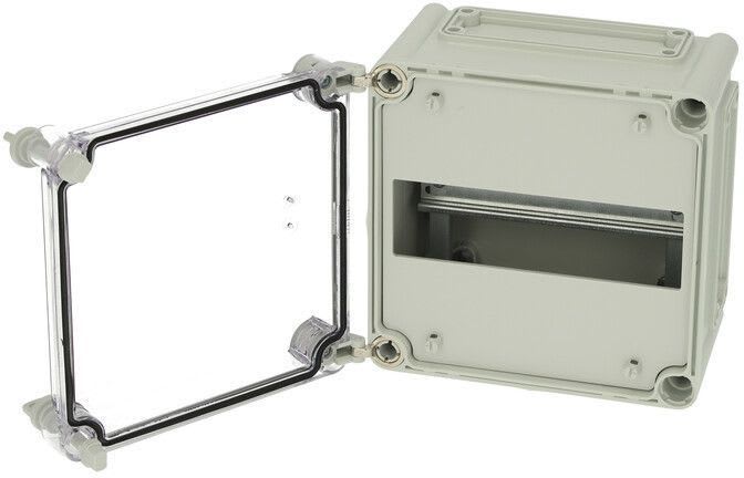 Sisältää : Laippa-aukollinen alaosa, ruuvit asennuslevylle, kansi PUR-tiivisteellä ja polyamidi kansiruuveilla. Sisältää DIN-kiskojärjestelmän. IP66/67; IK08