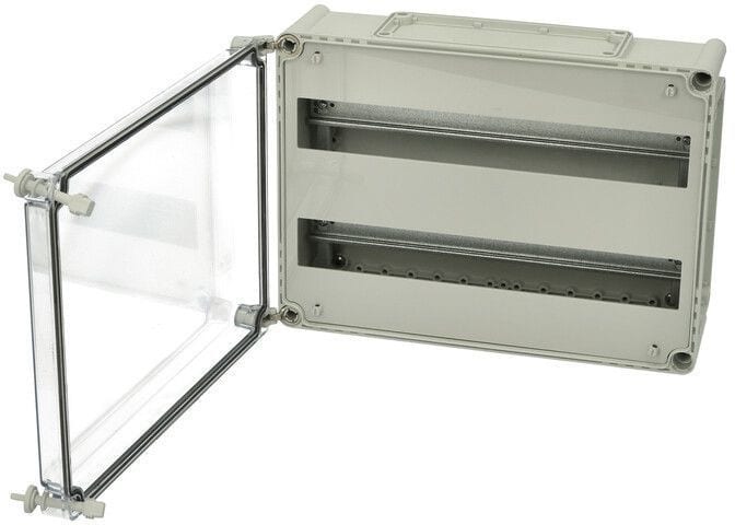Sisältää : Laippa-aukollinen alaosa, ruuvit asennuslevylle, kansi PUR-tiivisteellä ja polyamidi kansiruuveilla. Sisältää DIN-kiskojärjestelmän. IP66/67; IK08