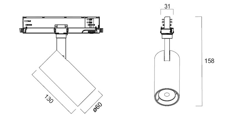 - Valaisimen liitäntälaite on sisäänrakennettu kiskoon asennettavaan virranottimeen