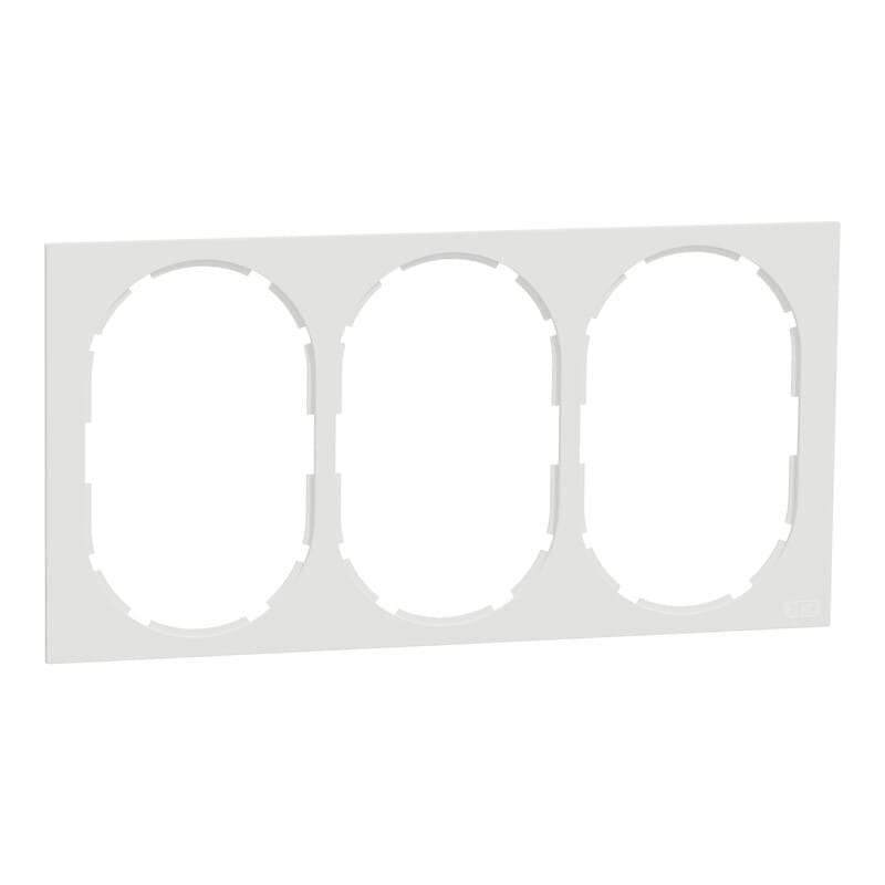 ELKO One 3-kehys 2-pistorasialle valkoinen ELKO One 3-kehys 2-pistorasialle valkoinen. Tuotteen mitat ovat (W) 229 mm x (K) 117 mm x (S) 5 mm. Se on valmistettu kierrätetystä polykarbonaatista (PC). Tuotteen väri on kirkkaan valkoinen (RAL 9003) ja se on mattapintainen. Se saavuttaa IP21-suojaustason.