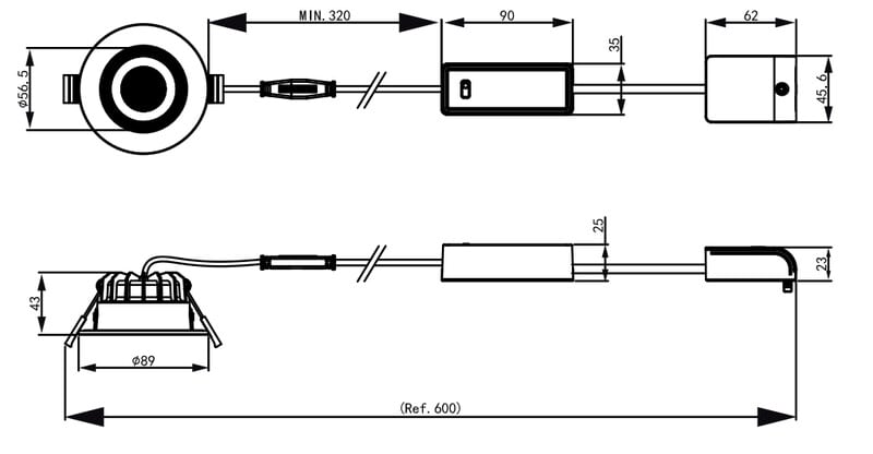 - Valaisimen korkeus 43 mm, soveltuu ahtaisiin alakattoihin