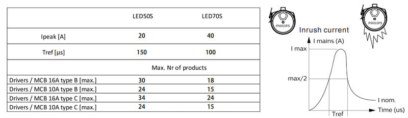 Enimmäismäärä valaisimia, johdonsuojakatkaisija C16: