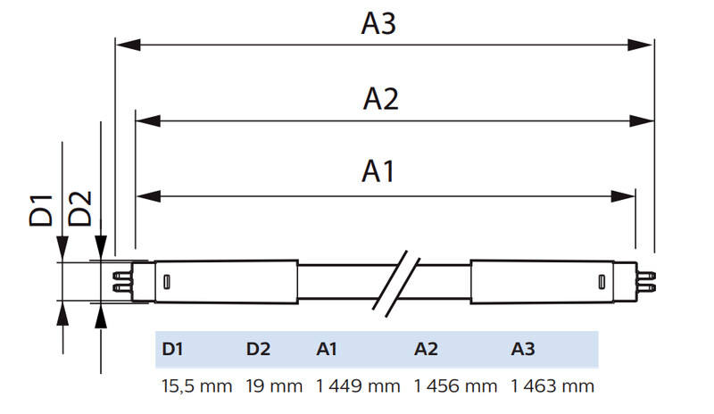 - Lampun pituus: 1500 mm