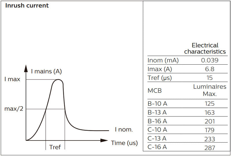 Enimmäismäärä valaisimia, johdonsuojakatkaisija C16: