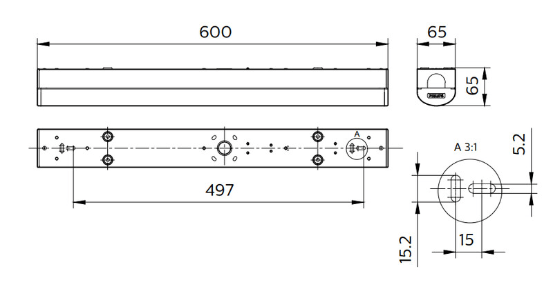 Philips CoreLine Batten All-in -runkovalaisin BN126C LED15S_24S/830_40_65 PSU L600. Valovirta 1500/2400lm, teho 10,8/17W, vaihdettava värilämpötila 3000/4000/6500K, ON/OFF, ei himmennettävä, IP20/IP40, pituus 600mm, käyttöikä 50 000h (L80). Philips CoreLine Batten All-in -runkovalaisin