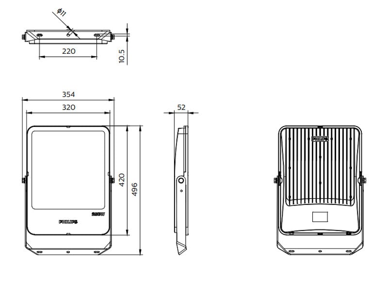 Philips Ledinaire Floodlight on monipuolinen valonheitin aluevalaistuskohteisiin työmaalle, pysäköintialueille tai rakennusten julkisivuille. Valaisimen värilämpötila on 4 000 K ja asennusta helpottamaan viistetty sanka 360 astetta. IP65- ja IK08-luokitusten ansiosta valaisin on kestävä ja useimpiin käyttökohteisiin sopiva. Valaisimen teho 250 W ja valovirta 30 000 lm. Valaisin korvaa 400 W:n monimetallilampun. Valaisimen käyttöikä on 50 000 tuntia viiden vuoden tuotetakuulla.