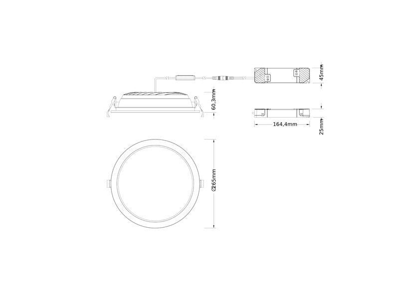 - Mitat (Halkaisija/korkeus): 265 x 60 mm