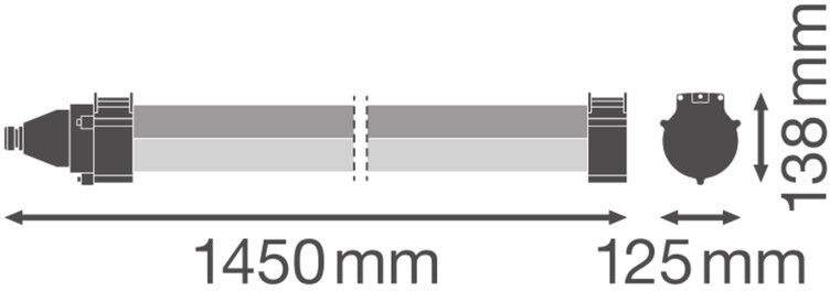 • Mitat (Pituus/leveys/korkeus): 1450 x 125 x 138 mm