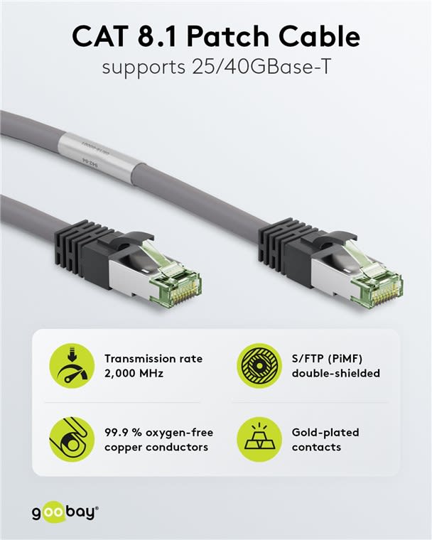 GOOBAY - Kytkentäkaapeli - CAT 8.1, S/FTP, 3m, har